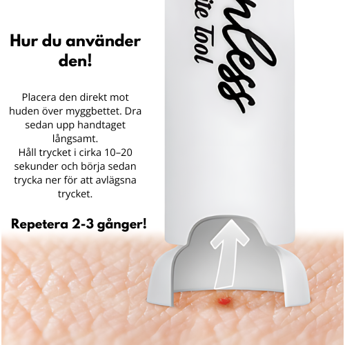 Painless är en praktisk sugkopp för att lindra klåda från insektsbett. Enkel att använda genom att placera den över bettet och applicera lätt tryck för att minska obehaget. Perfekt för snabb lindring av klåda och svullnad efter insektsbett.